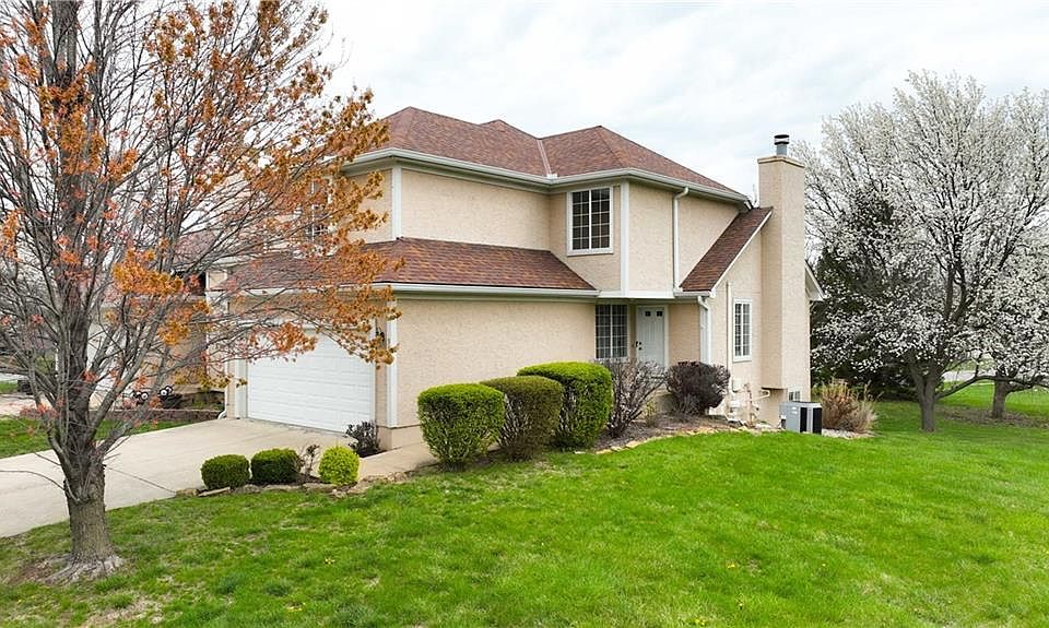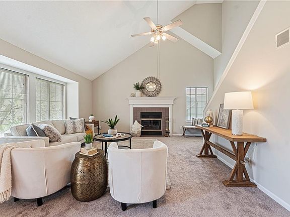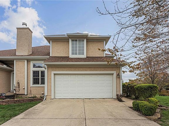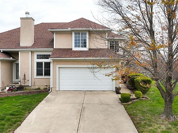 Easy living and move-in ready in a maintenance provided community! Beautifully maintained 2 bedroom townhome has 2 car garage and walkout basement! Kitchen features stainless steel appliances, solid surface countertops and breakfast nook. Conveniently located adjacent half bath for guests. Great room features soaring ceilings, large windows, and fireplace. Adjacent formal dining walks out to deck overlooking green space beyond. Fresh paint throughout main level. Upper level has generously sized primary bedroom with double closets, secondary bedroom, and a full bath. Finished lower level features LVT flooring with great room and additional non-conforming bedroom/flex space. HOA covers lawn care, exterior painting, snow removal and gutter cleaning. Award winning Olathe Schools and easy access to parks, area amenities and highway access. The HOA is $345/quarter.
