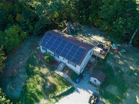 SET BACK OFF the road on the RI line sits this FABULOUS ENERGY EFFICIENT RANCH on 1.84 ACRES! NEW MINI-SPLIT HEATING & COOLING SYSTEMS! BRAND NEW SLIDER off the dining area to a NEW 35x14 ENORMOUS DECK for entertaining! STAINLESS STEEL appliances in Galley kitchen. GORGEOUS NEW BATHROOM! BEVERAGE fridge in NEW finished WALKOUT basement FAMILY ROOM W/ NEWER PELLET STOVE will convey! NEWER ROOF & SOLAR PANELS to save you $$$. WHOLE home NETWORK WIRING! WHOLE home SURGE protector in electric panel! NEW 200amp ELECTRIC PANEL, GUTTERS, UNDERGROUND DRAINS,IRRIAGATION SYSTEM, GRAVEL DRIVEWAY. SHED/GARAGE w/ POWER, HEATING & COOLING DOES NOT CONVEY but can PURCHASED! 1008 sq ft main level and 744 sq ft in family room!