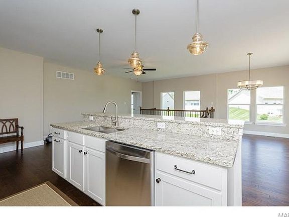 Brand new, gorgeous villa ready for immediate move in! Built by Bridgewater Communities, your villa experts, this stunning villa is a must see. Located in the Villas at Providence, this amazing location has easy access to Highways 40, 364 and I-70. The exterior is elegant with brick and stone accents, a 3 CAR GARAGE, landscape, an irrigation system, a composite 16 X12 deck and full sod. Features include an open atrium design, 9 foot ceilings, tall base trim, hardwood floors in the Foyer-hallways-Kitchen-Breakfast Room-Great Room-Powder Room, double door entry to Master Suite, raised height vanities, drop zone at garage entry with 42 inch wall cabinets, Deluxe Kitchen, large island with raised breakfast bar, corner pantry, 42 inch cabinets with hardware, granite countertops, stainless steel appliances, recessed can lights, pendant lights at the island, wrought iron spindles at atrium stairs, 9' patio door leading to the deck, transom window in the laundry room, ceiling fans, brushed nickel lever door hardware and more. The finished LL adds 850 sq ft of living space inc a large Great Rm, bdr, full bath, W/I closet and linen closet. Brand new, fantastic home, great location and a rarely found 3 car garage...check it out!