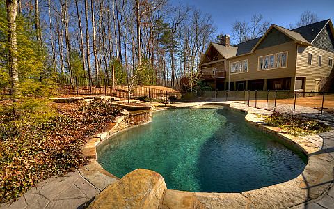 Elegant Mountain Estate! One of a Kind true Elegance. House features 3 bedrooms on Main Level Including Impressive Master Suite w/Large Walk in Closet + Sitting Room. Great Room, w/Cathedral Ceilings & Soaring Stone Fireplace. Gourmet Kitchen w/Huge Island & Stainless Appliances, Two Car Garage, All Paved Access, Terrace Level offers 4th BR & bath, Family Room w/Fireplace, Exercise Room, & 2nd Full Kitchen (Perfect In-Law Suite or Apt. w/Separate Entrance). Over the Top Outdoor Area with Pool, Hot Tub, Exterior Fireplace, and Manicured Landscaping. Extremely Private Location on 13.43 Acres within 4 Miles of Blue Ridge. Stone, Log Siding, and Hardy Board Exterior Finishes. Home is Handicap accessible.