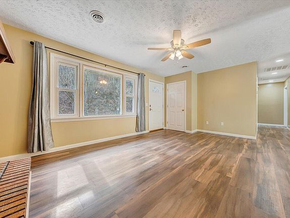 Come home to this beautiful country setting just 15 minutes from downtown Floyd. The all-brick walkout ranch is nestled in the elevated corner of an acre and a half parcel overlooking the newly fenced, flat, and well-maintained yard with Laurel Creek flowing along the rear boundary. Mature fruit and nut trees along with two sheds and a fire pit add to the charm of this relaxing area. The updated house has plenty of room for a large family and can be set up as two separate living spaces with one level living both up and down with each having their own entrances, electric meters, heating and air conditioning, full kitchens, and laundry hook ups.
