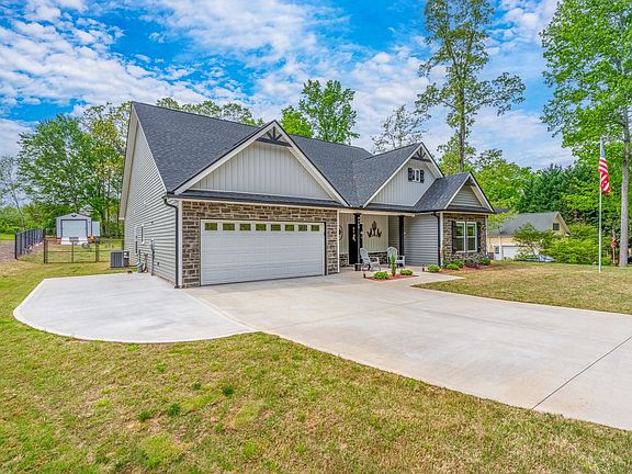 Price reduction don't miss out. Introducing your dream home with no HOA. This charming craftsman-style residence boasts four spacious bedrooms, 2 1/2 baths, and a versatile flex space, perfect for use as a home office, playroom, or whatever suits your lifestyle. With no HOA, enjoy the freedom to personalize your space to your heart’s content. Step inside to discover the allure of 10-foot ceilings in the inviting living room, creating an airy and open ambiance. The kitchen is a chef’s delight, featuring upgraded quartz countertops and top-of-the-line appliances, making meal preparation a breeze. LVP flooring graces the common areas and bedrooms, while sleek tile adorns the bathrooms and laundry area, blending style with practicality. Entertain or unwind in the oversize Screen Porch, ideal for enjoying the outdoors in comfort. Need storage? Look no further than the large outbuilding, perfect for storing all your tools and toys. Plus, the partially fenced yard offers privacy and space for outdoor activities. Don’t miss the large master bedroom retreat with a custom wardrobe and walk-in closet, providing ample storage and a luxurious feel. And with stunning coffered ceilings in the entry and dining area, this home exudes elegance at every turn. Make this exquisite property your new home sweet home!