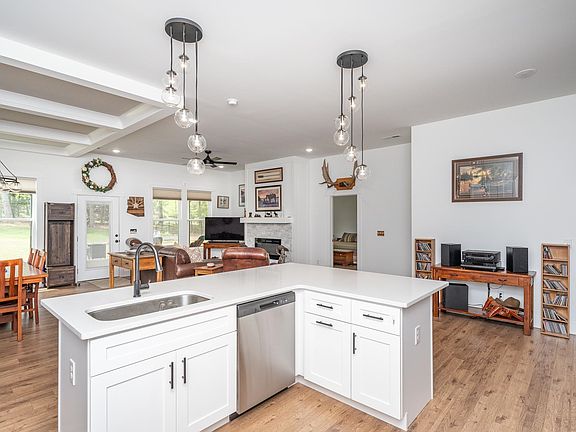 - Ceiling Fan(s), Tray Ceiling(s), Fireplace, Soaking Tub, Solid Surface Counters, Open Floorplan, Split Bedroom Plan, Coffered Ceiling(s)