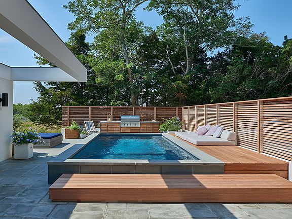 June $35,000; August-LD $90,000; September $15,000With sweeping views of Accabonac Harbor, this recently renovated 1960s Modernist style home, designed and decorated by Meyer Davis, offers impeccable style and enviable outdoor spaces in a simply magical setting. The sunny pool area off the kitchen has a heated, gunite pool with saline filtering system and an outdoor kitchen with Wolf 6 burner grill. The living room opens to the 1500 SF rear deck with al fresco dining and seating area complete with a picturesque vista of hammocks on sycamore trees, grassy barrier islands, and the harbor beyond. Brand new kitchen with Miele appliance line. The adjacent 65 acre conservancy affords exceptional peace and privacy.