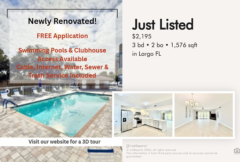Welcome to your next home at 960 Starkey Road, Largo, FL 33771perfectly located in the heart of Pinellas County with unbeatable access to everything the area has to offer! This centrally located rental puts you just minutes from the sugar-sand beaches of Clearwater Beach, the scenic Largo Central Park, and the Pinellas Trail for biking and walking. Enjoy easy access to top dining, shopping, and entertainment at Largo Mall, Seminole City Center, and nearby Clearwater, plus quick commutes via US-19 and East Bay Drive. Whether you're spending weekends at the beach, catching a game or concert in downtown St. Pete, or enjoying local parks and waterfront sunsets, this location delivers convenience, lifestyle, and Florida living at its best.