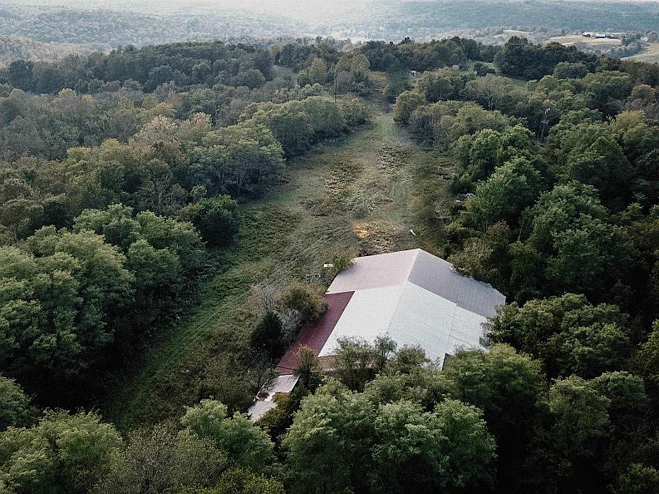 Great trails 2 ponds, very secluded if you want to get off the grid or if you are Looking for land to play, hunt, build, store on, this could be it. Great for ATV's & dirt bikes. Spacious building approx 90 x 126 with concrete floor, once used as an airplane hangar. 30 x 36 basement, bedroom and bathroom. Land has a long flat ridge, cleared, with a seasonal view of river. Mixture of flat at ridge, the rest is wooded.