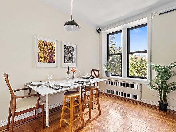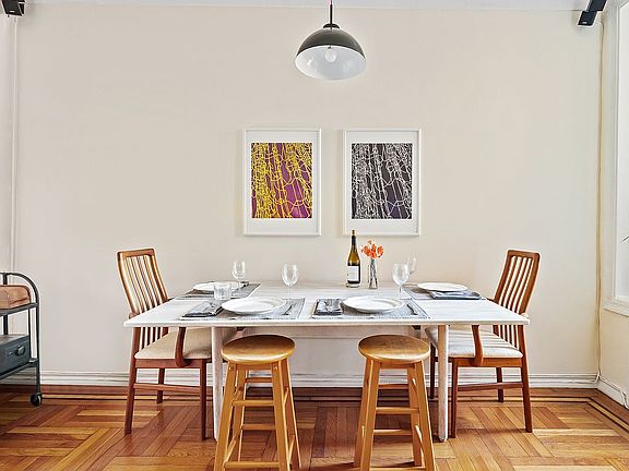 This home is a great combination of prewar details, high ceilings and generous room proportions along with a sleek renovated eat-in kitchen with a window from which the owner enjoys the daily calls of mourning doves from the front courtyard or from her kitchen window sill when they come to say hello. The stunning renovated tile bathroom features both a jacuzzi tub (for those special relaxing times) plus a separate glass-enclosed shower. An extra-large bedroom has space for a work-from-home desk. The oversized living room easily accommodates a full-sized dining table. There are tons of closets, 5 in all, and a large entry foyer to welcome you home. The well-maintained building has a live-in super, a gorgeous common garden behind the building where residents routinely barbecue and visit with neighbors, and a large laundry room in the basement. Surrounded by classic Brooklyn townhouses, 960 Sterling is located on a tree-lined street in an historic district, just two blocks from fabulous Brower Park, tended by the Friends of Brower Park group which holds events year round and takes incredible care of the Park's native plants and old-growth trees. Easily accessible to the famed Brooklyn Children's Museum, the Botanic Garden, the Brooklyn Museum and Prospect Park. Here is what our seller has to say about WHY THEY LOVE LIVING HERE: "Our proximity to the Brooklyn Museum, the Brooklyn Botanic Garden, Prospect Park, Brooklyn Public Library, and the Grand Army Plaza farmer's market........There are also a lot of things that don't get talked about as often: for example the Weeksville Heritage Center, a bit further east. The tennis courts at Lincoln Terrace Park. Tons of community gardens (Bergen Street community garden and Imani community garden, to name a couple). At Union Street and Utica, there is an incredible place started by an avid urban farmer in his building's communal green space, the Union Street Farm, which gives away their harvests of organic vegetables every weekend for free. Lastly, I'll just say that the absolute best thing about this building—other than our gorgeous garden where we BBQ every weekend—is the community. We have an active email list where people ask for advice and help when they need it. I've made lifelong friends in this building and I know probably over 40 of my neighbors on a first-name basis (and that's a conservative estimate). Any time I need to borrow something or find that I'm missing a lemon for a recipe, I have about 10 people who text me back immediately. This is a neighborhood where people say GOOD MORNING to each other. And if that's what you're looking for....this is the place!