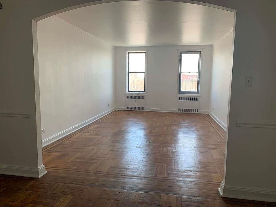A sun drench two bedroom co-op on a fifth floor elevated building. Large foyer Hardwood floors through out high 10 foot ceilings. Great cross ventilation lots of closet space with large master bedroom. Bathroom with great soaking tub and separate shower. Smaller 2nd bedroom great for child's room or office space. This building is well maintained super lives on site clean and good financials. Close to all transportation 2/5 or a quick walk to a/c lines as well, about 20 minutes into the city.
