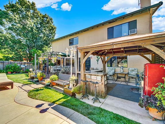 Such a beautiful house. This home features a formal entry with double doors. Downstairs offers a large living room and dining room combo. Kitchen that has new appliances, and countertops. Eat in kitchen off the family room with ceiling fan, wine closet, and wood burning fireplace. Indoor laundry room and half bathroom that has been updated and features a barn door. All bedrooms are upstairs and a huge game room. There is a pool table in game room that can stay if desired. All bedrooms have ceiling fans and large walk in closets. Most of the home has real hardwood flooring. Dual zone heat and air. Rear yard has built in fiberglass salt water pool. Pump and filters just replaced. Back yard is like a resort. Corner water feature, gazebo with bar for entertaining and Gas fireplace in a pergola. Dog run, one shed convey. beautifully landscaped front and rear. Three car garage plus RV parking, and so much more. Close to school, shopping, and easy freeway access.