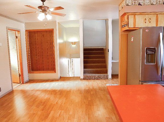 Updated home on large lot located at end of cul-de-sac! This 4 bedroom home has a great lay out! The family room is open to kitchen and dining area but also provides some separation. The master (larger) bedroom has its own level. The flooring has largely been updated as well as the paint! Notice the 3 year old gas forced air furnace and the 3 year old water heater. Outside you'll enjoy low traffic, newer vinyl siding and windows, a large lot, a large 1 car garage, an exterior outbuilding/shop. There are floor irrigation water rights to make caring for the yard inexpensive. Come take a look asap!!