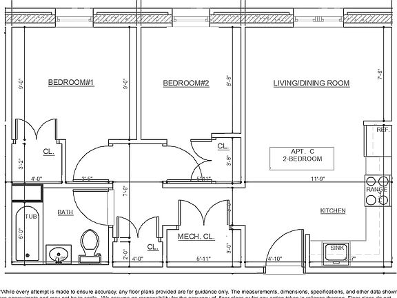 No utilities are included in the pricing of this unit except for cold water supply. While every attempt is made to ensure accuracy, any presented floor plan is for guidance only. The measurements, dimensions, specifications, and other data shown are approximate and may not be to scale. We assume no responsibility for the accuracy of this floor plan or for any action taken in reliance thereon. This floor plan does not create any representation, warranty or contract. All parties should consult a professional, such as an architect, to verify the information contained herein. WE DO NOT ACCEPT TEXT MESSAGES OR TELEPHONE CALLS FOR APARTMENT INQUIRIES. TEXT MESSAGE, TELEPHONE and VOICEMAIL INQUIRES WILL NOT RECEIVE A RESPONSE. Please use the contact functions of this website to make an inquiry.