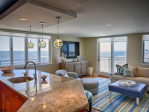 Fabulous Ocean Front wrap around corner with spectacular ocean views! This 2 bedroom, 2 bath condo is situated on the southern corner overlooking the sandy beaches of Margate & Longport. Enjoy breathtaking panoramic views of the ocean & bay from this impeccable designer condo boasting a beautiful updated gourmet kitchen including a new sleek granite counter top. Spacious en suite master bedroom & guest bedroom also offer spectacular ocean views! Other additions to the condo include all new recessed lighting & window treatments, hardwood flooring and great storage. A unique opportunity to enjoy a sunrise & sunset along with beauty and tranquility in a relaxed atmosphere. Amenities at 9600 include an exercise room, heated swimming pool, garage parking, 24-hour security and a Community room! Enjoy the close proximity to Margate's finest dining & shopping area! A perfect retreat at the "Jersey Shore."