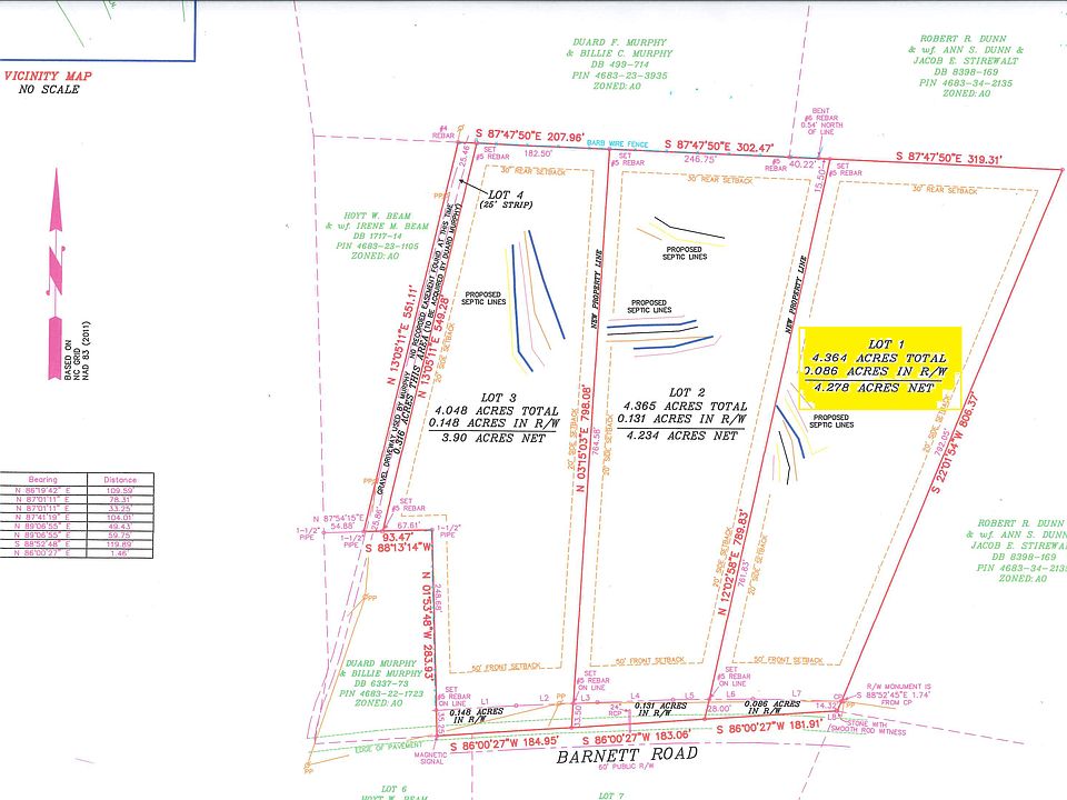 Lot 1 ready to build. Survey has been complete and septic permits are recorded with the county. Lot 1 is 4.364 acres with 184 ft. of road frontage and goes back 792 ft. Located on Barnett Road this property provides all the comfort of the country but yet close enough to plenty of excellent shopping and some of Cabarrus County’s finest schools. Centrally located minutes from Mooresville, Davidson and Kannapolis. Zoned Residential-Light Industrial the possibilities are endless. Whether you would like to have horses or build a shop to tinker on your favorite hot rod, or just sit on the porch and watch wildlife in your back yard this is for you. Situated on flat land with the front currently being farmed and the back is wooded this property requires very little site work to start your dream home today.