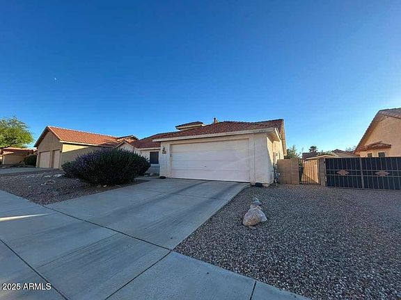 Beautiful single-story 4-bedroom, 3-bath home located in the desirable Hacienda Del Oro neighborhood. This spacious residence features a large living room, a formal dining area, and a kitchen with abundant cabinet space. The open split floor plan includes a great room and separate dining area, providing flexibility for family living and entertaining. The oversized primary suite offers, a walk-in closet, and plenty of storage. Additional generously sized bedrooms provide comfort for the entire family. Tile flooring is featured in all high-traffic areas, with carpet in the bedrooms for added comfort. Enjoy a private outdoor sitting area, perfect for gatherings or quiet mornings. Be the one to bring this FIXER UPPER/ INVESTOR special back to glory.