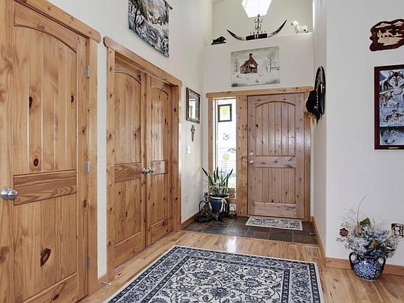 Country Living at itâÂÂs best w/ spectacular 360 degree views! Custom built ranch style home on 14 acres with 10 acres in grass hay. Hickory hardwood floors. Huge kitchen w/ corian countertops & extra large pantry. Dual heating system. Storage galore in every inch of this house! 1,432 Sq. Ft. garage, canning/craft room off garage. Beautifully landscaped yard w/ auto sprinklers & drip system. RV hookup & dump. 40'x24' Barn/Shop. Bring the animals & enjoy the privacy of quiet country living. 30 min commut