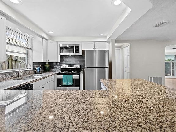Here is the UPDATED POOL HOME you have been waiting for! MOVE IN READY! BRAND NEW kitchen! New SS Appliances, LIGHT and BRIGHT cabinetry and GRANITE counters. FRESHLY painted inside and out! LARGE Family room - NO CARPET IN HOME! Sizable Master Bedroom with WALK IN CLOSET. COMPLETELY NEW, LARGE En-Suite Master Bathroom with GRANITE. Dining Room adjacent to kitchen with a stone accent wall for added interest. FULL GUEST BATH. Did we mention the HUGE POOL? Great for floating on the weekends or getting in some laps after a hard days work! All new interior DOORS! Mature landscaping surrounds this lovely home. Additionally, there is a Screen room off dining room and family room with a roof for shaded outdoor living. Area for a fire pit in rear of home. Centrally located within Regency Park. Hop onto the Suncoast Expressway and be at Tampa Airport or International Plaza within minutes. NO HOA OR CDD!