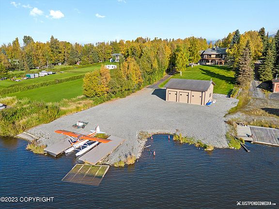 Wake up every morning to breathtaking views of Anchorage's Campbell Lake and enjoy over 155 feet of private lake frontage. For those with a sense of adventure, this property offers an exclusive floatplane dock, allowing you to effortlessly take to the skies and explore Alaska from your doorstep. The main level of the home boasts all the essentials for comfortable living, including awell-appointed kitchen, a spacious living area, an office and 4 bedrooms including the primary suite. Descend the staircase to discover the expansive basement, offering endless possibilities. Whether you envision a home theater, a game room, a home gym, an in-law suite, or all of the above, the basement provides the additional space you desire. Other features include a second full kitchen in the basement, two gas fireplaces, sauna with new cedar, an in-ground irrigation system, 2 50-amp plug-ins for your RV, endless parking and paved access to a large, detached garage with 9-12ft roll-up doors, a mezzanine and shop space. See features list for additional information!