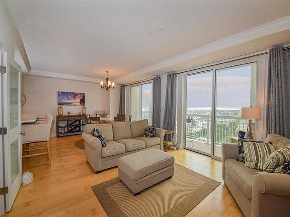 The Baybreeze located on the 5th Floor with perfect sunsets every evening. This is a rare floorplan that provides luxury in a well thought out floor plan. This residence boasts Classic seaside architecture in a brilliantly modern interpretation. This spectacular residence boasts a large veranda featuring breathtaking views of the intercoastal waterway. You can see all the way to Cape May and watch the boats navigate between the intercoastal and the Atlantic Ocean. Three full bedrooms and two baths make this great for the entire family. Imported designer-selected hardwood flooring, Luxurious designer-selected New Zealand wool carpeting, Paneled wood doors, Base and crown moldings, Large walk-in closets, Laundry room with full-size washer/dryer.