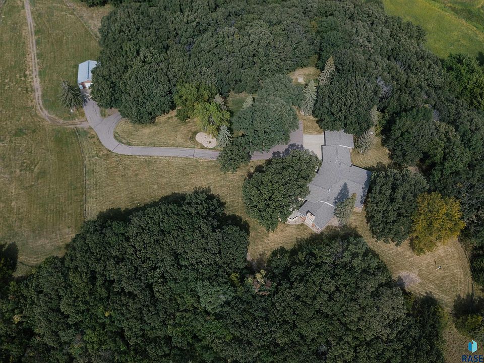 The opportunity to own a setting like this does not come around often! This beautiful home is tucked back nearly half a mile off Maple St near the middle of the section and perfectly situated atop the high point of the land surrounded by acres upon acres of beautiful trees! This home is elevated over 70 feet above the Big Sioux River, while providing you trails down to access it. The views are incredible. The privacy is incredible. The adventure of exploring the land is incredible. The wildlife is plentiful! Truly an unprecedented opportunity to own a little piece of paradise! Conveniently located within 1 minute from the city of Brandon and less than 5 minutes from the city of Sioux Falls. This property features over 6,500 square feet with 5 bedrooms, 5.5 bathrooms, oversized 3 stall garage, includes a 30x40 outbuilding with power and concrete floor, and approximately 21 acres of land. The original portion of the home was built in 1972 with a major addition in 2000-2001. Inside the home, on the main level you have 4 bedrooms, each with their own private ensuite bathroom. The remaining portion of the main level has an open kitchen, formal dining room, breakfast nook, and a bright sitting room near the patio door leading to a relaxing patio on the side of the home. A perfect place to sit in peace and quiet while you relax surrounded by hundreds of mature bur oak trees. This property is the perfect mix of home and land! Final parcel size is to be approximately 21 acres and will be platted from existing total of 57 acres +/-.