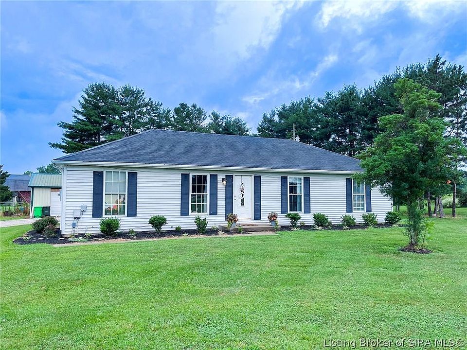 What a view! Come home to rolling hills & farmland right next door to your own .46 acre slice of Greenville countryside, while still in Floyd Co. school district! As you enter, natural light pours into this open & airy space; theres plenty of room to entertain & fresh luxury vinyl plank flooring means cleaning is a breeze. Down the hallway, youll find an updated full bathroom & three bedrooms - finally a space for everyone! This well-maintained home boasts updates galore & the kitchen appliances stay, so you can move right in! Enjoy modern living with 200 amp electric service to the home & 100 amp service in the expansive pole building for all of your projects, then spend your evenings on the back deck with family & friends while admiring Greenvilles spectacular sunsets. Dont forget - an attached garage means no more carrying groceries in the rain! Call or text for a private showing of this absolute charmer! Updates: roof 4/2020, HVAC 2017, water heater 2020, newer cabinets & countertops, dishwasher December 2021, some new windows 2021, all new flooring in 3/2020, deck 2020. 1 year 2-10 home warranty provided by sellers.