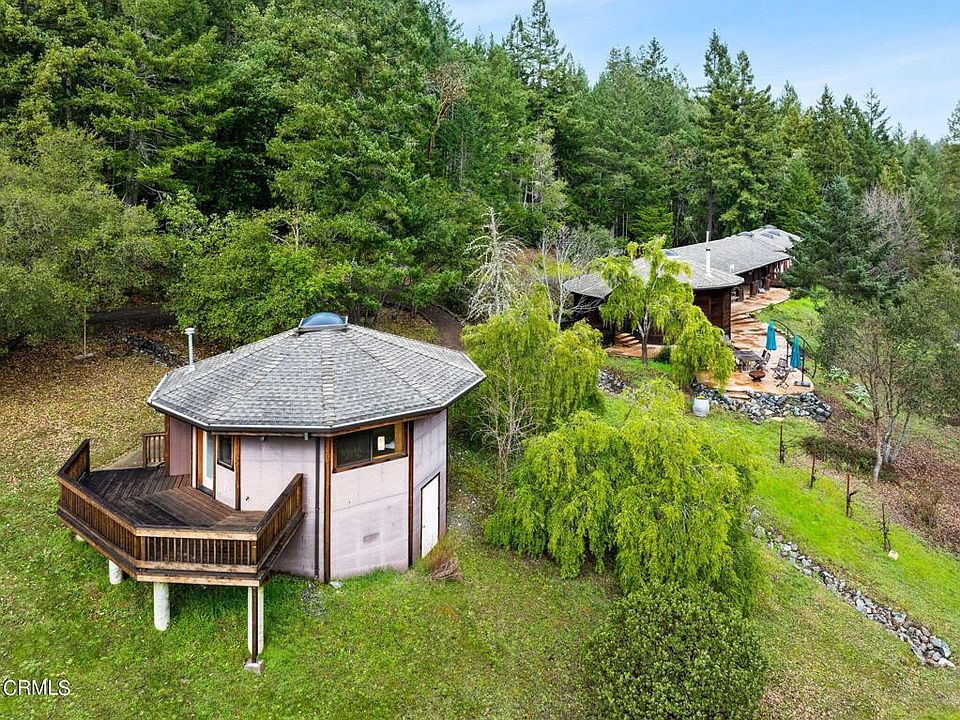 Expansive, unique luxury yurt-style home on 15+/- beautiful acres minutes from downtown Boonville. This stunning property is the perfect retreat for a family or group of friends seeking respite from the hustle and bustle of modern life. The main living yurt is 1,000+/- sq ft round space with skylight composed of a kitchen, large living room, full bathroom and laundry/mud room. A flagstone patio and garden out the kitchen door rounds out the common space. An expansive covered breezeway/carport connects the main living space to the bunk house, which is a perfect location for hanging hammocks, cooking dinner over the custom bbq or reading a book in the shade The bunk house is composed of three separate bedrooms with custom Murphy wall beds and two Jack-and-Jill bathrooms. Sturdy wood decks on the Eastern side provide views of the gently sloping lawns below. On the opposite wing and up a garden path perches an independent primary suite yurt with its own full bathroom and deck overlooking a small vineyard of mature grape vines and fruit trees. The main houses and surrounding land is deer fenced with an automatic drive though gate. Come see this stunning retreat home, minutes from world class wines and the charming, relaxed pace of life in Boonville. Pop into town for supplies or out for a swim at the Navarro River in the morning and be back before breakfast. Press apples, plant a garden, make your own wine, live your dream in the heart of Anderson Valley.