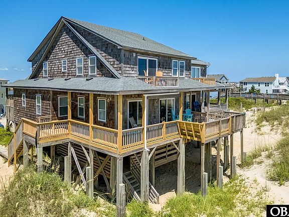 Appreciate everything that South Nags Head has to offer with gorgeous ocean views in this spacious, well-maintained oceanfront property. Great views from almost every room. On the ground level you will find a dry entry, area to grill, an outdoor shower, and sitting area with a swing to hang out after a long day at the beach. The main level includes a living room, dining area, full bath, bedroom, and kitchen with pantry closet and washer and dryer conveniently located within. The living room includes two sliding glass doors to exemplify the oceanfront views with a new (2025) oceanfront deck that wraps around the east and south sides of the property. Deck is outfitted with built in benches and Polywood furniture. Off the kitchen you'll find a private west facing covered deck with a hot tub to enjoy the sunsets. Upon entering the top level, you'll find the primary suite with a private ocean facing deck space and large bathroom with a Whirlpool tub, two additional bedrooms, and a full bathroom. Direct walkway to the beach and located adjacent to a lifeguard stand at Juncos St. in the summer months. To the south, property is just minutes away from Bodie Island Lighthouse, Pea Island National Wildlife Refuge, Oregon Inlet Fishing Center, and Oregon Inlet. To the north, about a mile away from Outer Banks Pier and just a few miles away from Jennette's Pier, restaurants, shopping, Roanoke Island, and more. List of improvements in Associated Docs.