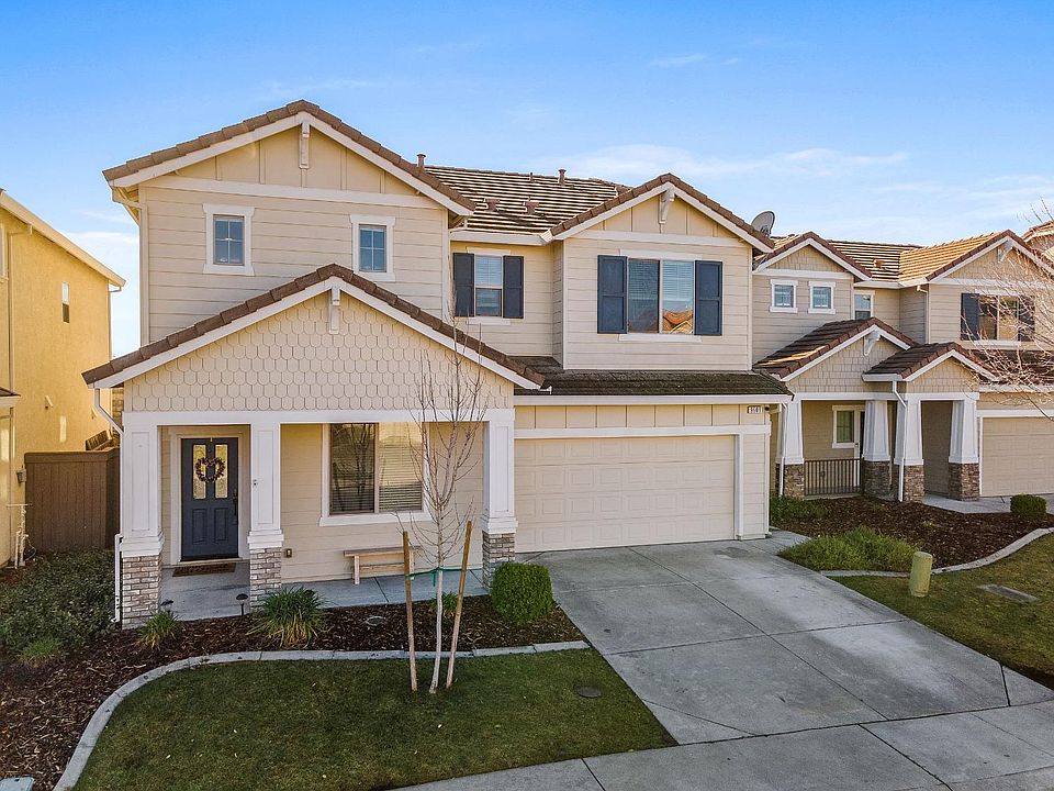 Lovely Home in a Gated Community and in a Court! Light and bright with an open floorplan. The main level is a great room concept with a combination dining and family area, full bath with decorative tile in shower, and a bedroom that can be used as an office or for guests. The kitchen has designer tile backsplash, large granite island, double oven, and lots of cupboard space. The glass slider provides access to the backyard patio and lawn area. The second level has a large master suite with separate tub and shower with accent tiles, dual sinks with granite counter, two walk-in closets, and pretty views. There is also a cozy loft with fireplace insert and built-ins. The two additional bedrooms, a full bathroom, and laundry room are also on the second level. Ceiling fans throughout. Low HOA's include front yard maintenance with a community park within walking distance. Lots of additional storage included in the two car garage, and the downstairs closet. The existing washer, dryer, and fridge are included. Big savings with SMUD for electric! It's easy living in this home with it's comfortable floor plan and nice Roseville location. Near shopping, Galleria Mall, Denio's Auction, and I-80.