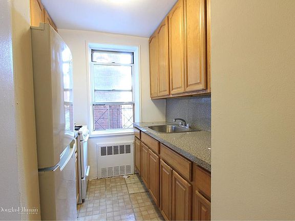 This studio offers an ample amount of space. Great views of the bridge. Tons of closets throughout the unit. The L shape of the layout makes the unit easy to layout. The space this studio offers is great. The kitchen is offset from the living space. The kitchen is a galley style kitchen with a window. The unit is on the 5th floor of an elevator laundry building. Live-in super. heat hot water included. Please note the board does not allow dogs for renters