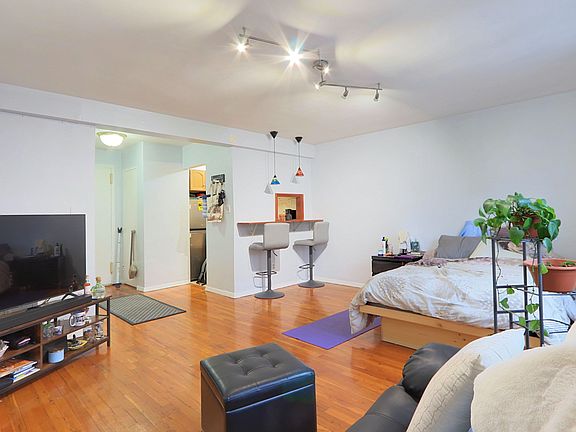 Unit Highlights: Two-room studio featuring a separate kitchen east-facing for natural light and sunrise rays. Three closets distributed throughout. Open window kitchen with ample cabinet space Rent includes heat, hot water, water, and cooking gas Garage parking available (possible waiting list) near multiple garages Laundry facilities on every floor of the building Two elevators for convenient access Building amenities include a live-in superintendent and porter Phone intercom system for security and communication Proximity to parks, trains, coffee shops, and restaurants 9602 4th Avenue is ideally located in Bay Ridge, offering close proximity to Shore Road, public transportation, coffee shops, restaurants, and a library, ensuring plenty to do nearby. This well-maintained co-op building is serviced by a live-in superintendent and porter, providing a secure and attentive environment. Amenities include two elevators, laundry facilities on every floor, and optional garage parking for an additional cost. The post-war building includes heat, hot water, water, and cooking gas in the rent, simplifying monthly expenses. The two-room studio is thoughtfully laid out with three closets throughout. east-facing windows bathe the unit in stunning evening light while minimizing street noise, offering a peaceful living environment. The studio's layout facilitates easy furniture arrangement, and the separate kitchen is perfect for home cooks.