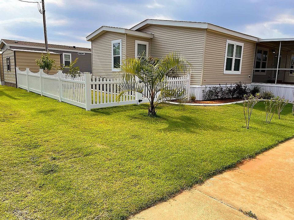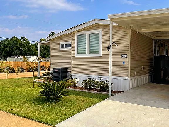 55+ COMMUNITY *********************************** Work, Retire or vacation in a sub-tropical paradise located 15 mins to beautiful Downtown Fairhope, 23 miles to Gulf Shores or 26 miles to Orange Beach, 2.5 hrs to New Orleans! Modern, beautiful and immaculate 2021 Sunshine 28'x68' offset double wide manufactured home in Key Allegro Villas retirement (55+) park, Fairhope, AL. Designed with an open concept living/dining/island kitchen, 3 bedrooms, 2 baths, 1,506 sq ft. Large utility/laundry/Pantry off kitchen at rear exit. Main bedroom with huge luxury on-suite at opposite end of floor plan away from 2 other bedrooms and 2nd bath. Walk-In closets in all bedrooms. The outside features extensive landscaping with custom concrete edging, vinyl picket fencing, 2 large screened-in decks at back and front of house, covered concrete BBQ pad, 2+ car carport, 3 person Tornado Shelter, 10'x12' shed with electricity, *Many more decorative and safety items added. All LG appliances and 2" blinds will remain. On-site Management. Low monthly Lot Fee of $325. No Property Taxes. SOLD AS IS/WHERE IS. NO implied Warranty except roof. Sunshine Prime PR12868-2027 model. Call or text for more information or to schedule an appointment to view.