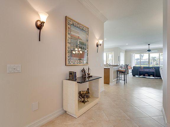 Popular Atlantic Grand model. When you walk in, the first thing you see is the shimmering lake straight ahead. This home has an open floor plan and many extras. There is crown molding throughout, open kitchen with no wall, extended granite counter area, glass and stone back splash and a Central Vac system. Window treatments include plantation shutters in the master and guest room. The lot has an easement on the side which extends the property. On top of all this, Valencia Reserve is one of the most active communities with a new pickle ball court and over 50 clubs to choose from. Take a look; you will be happy you did.