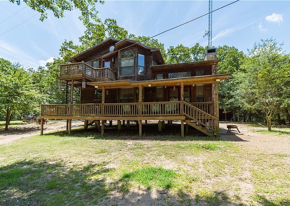 Beautiful rustic Lake Home! This split-3-level home offers over 300 feet of private water-front to Lake Tawakoni and only 55-minute drive east of downtown Dallas! This spacious home features 3 bedrooms, 2 bathrooms in the main house, with a guest studio suite making a spacious 4th bedroom and 3rd bathroom. The home backs directly to the water's edge with plenty of privacy. It has a huge covered deck with spiral staircase to a balcony off the master bedroom, a grand gazebo with hot-tub, and a lighted covered boat dock for fishing, swimming or just relaxing and enjoying nature. Other features include: An oversized garage with shop, a unique boat-barn with powered boat trailer on a ram and small animal coral.