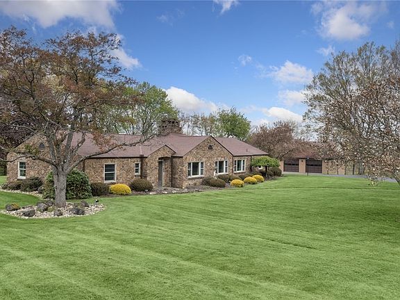 You'll find this beautiful, sprawling one-level custom-built stone ranch estate just minutes from RT 19, yet it's picturesque 4 acres offers a private oasis, giving the feel of country living. Great for entertaining, the interior of this home is spacious, sun-filled and offers exceptional indoor/outdoor flow. Master bedroom features en-suite bathroom and his/her closet space. A formal living room w/ stone fireplace, formal dining room, study, family room and powder room round out the first floor. Four season room w/ custom finishes lead onto the large patio, perfect for relaxing or entertaining. Oversized detach garage perfect for additional vehicles, toys, etc. Custom built guest house with an additional two oversized garage spaces, full kitchen and bathroom, large windows for natural sunlight and a beautiful view of this estate. Minutes from shopping and dining in Wexford/ McCandless. Easy commute to Downtown PGH.