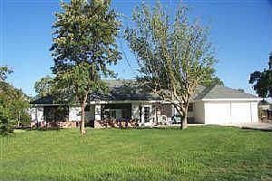 5acre Country Estate gives multi-generation comfort and privacy with 2 separate Master Bedrooms with bathrooms and walk-in-closets. Included also are two additional large bedrooms. The kitchen boasts granite, tile, a large pantry, and updated appliances. Formal Living Room, Dining Room, Office, Sun Room, Laundry Room, give working and living space for all. A paved drive and lots of blacktop leads to the Outbuildings: (1) 30ft x 24ft converted garage that is finished, insulated, carpeted, wired 220, separate PGE meter, for business (2) Garage(2 car)w/ workshop, office, outside carport, back + front porch (3)Tack Room w/ attached 3 bay open lean-to barn. (4) 2 attached open carports for storage of extra height vehicles. Also enjoy a fenced area for horses.