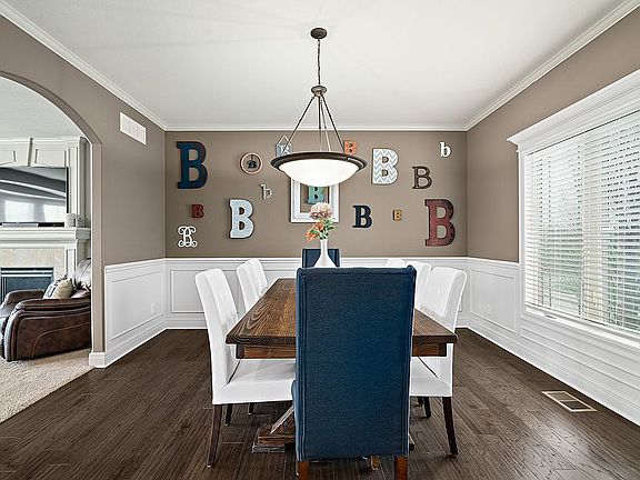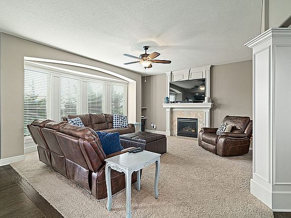 So much to love in this BEAUTIFUL 2 STORY home in the Liberty North School district. Open concept living with spacious great room, dining areas and kitchen w/7' kitchen island & granite countertops. Walk-In pantry w/convenient pass through window from 3rd car garage makes for easy grocery storage. HDWD FLS in dining areas, kitchen and all 2nd floor bedrooms and upstairs hallway. Large built-in bookcase/shelving at top of stairs. Huge master bathroom w/marble floors, 2 vanities, large whirlpool tub, large walk-in shower. 2nd level laundry room has space for hanging clothes. Enjoy entertaining family and friends on the outdoor paver patio w/ built in grill & fire pit or enjoy movie night or watching the big game in the finished basement w/mounted projector, 120" projector screen, surround sound and receiver. Large wet bar w/granite countertops , NEW luxury vinyl flooring & surround sound speakers. Basement has 5th bedroom and full bath. Freshly painted exterior and some bedrooms and trim upstairs. Radon Mitigation System installed 21'. Fenced backyard. Close to shopping, restaurants and great highway access. ROOM SIZES ARE APPROXIMATE AND SHOULD BE VERIFIED BY BUYER AND BUYER S AGENT. 2023-04-13
