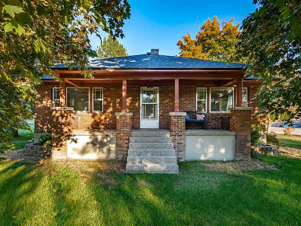 Charming 4 bd/3bth 1930's updated brick bungalow across from Marshall Creek. This large 3,000 Sq ft home boasts many features including new roof, Central AC, master suite w/ heated tile, walk-in shower and double sinks. Large walk out basement w/ in-law setup potential. 2 large family rooms with lots of natural light. Sprinklered yard w/ gravel fire pit on 1.25 acres, two car shop & stamped concrete patio w/ string lights perfect for entertaining. Don't miss the beautiful sunsets right off the front porch!