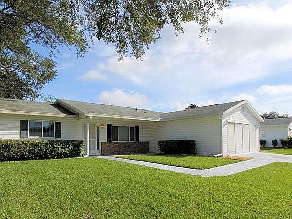 Popular Chestnut model. NEW A/C! Home feels Big and Open with the Cathedral Ceilings upon entry (NO Popcorn). Open floor plan. Split Bedrooms with Walk-In Closets. Tile in living room, dining area, kitchen and Lanai! Inside laundry with Wash Tub. Large TILED Florida room and big covered patio for grilling opening to big shaded AND fenced yard. Extra storage in garage. Extra Refrigerator in Garage. Screened garage door. SELLER TO CREDIT BUYER $7,300 FOR NEW ROOF AT CLOSING. BEST BUY in SCS! Close to shopping, music, restaurants, medical and entertainment in The Villages. Golf, swimming, fitness, and more. Very Friendly 55+ Community.