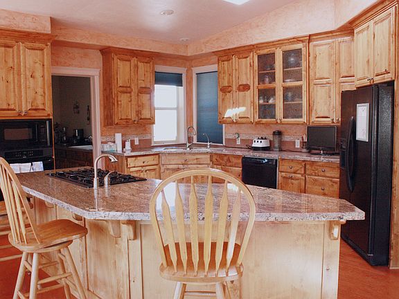 Custom built quality home w/ INCREDIBLE views!!! 1 owner & immaculate! Amazing custom designed front door by" In the Woods", metal siding accented by gorgeous faux stone, extra wide door ways, spacious bedrms up & egress windows in bedrooms down! Ensuite guest bedroom w/ enormous walk in closet! Very "Open" plan w/ vaults, granite counters in true gourmet kitchen (20 drawers) w/ knotty alder cabinets, pull out drawers, 2X6 construction, 2 way fireplace in great room & master bedrm. Deluxe laundry room & lots of cabinets! 4 season porch w/ inviting propane gas stove & fabulous views & privacy! Gas heated enormous over sized triple garage. 2 tiered decks & patio. Extra wide staircase to basement. "Barnlette" for more toys & yard equipment! Bath down has tub & is plumbed for future toilet, sink & shower. Too many features to itemize! Craft & activity rooms, & beautiful office off kitchen!