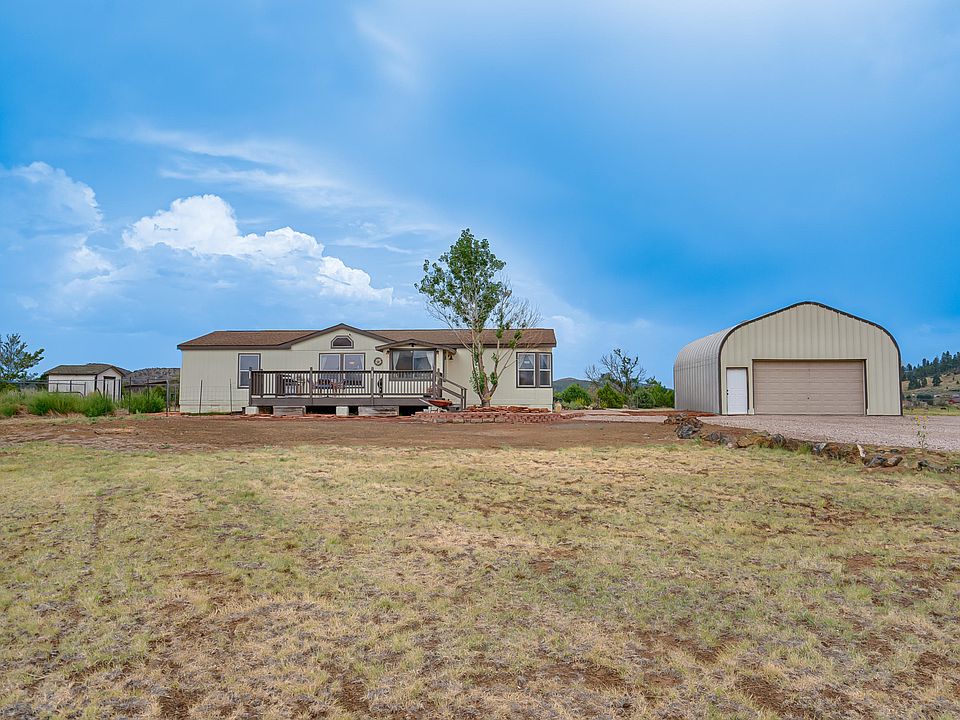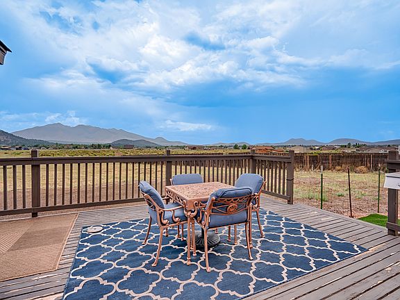 Move in ready 3 BD / 2 BA manufactured home on 2.28 acres with panoramic San Francisco Peaks views! Split floor plan and open great room, new roof about 7 years ago, new exterior paint and window screens in 2018, and new water heater just a few months ago. Fully fenced for your animals, large oversized garage and plentiful RV + ATV parking, lots of room for gardens, and only a few blocks from forest access. This home has a lot to offer and is priced under $350k!