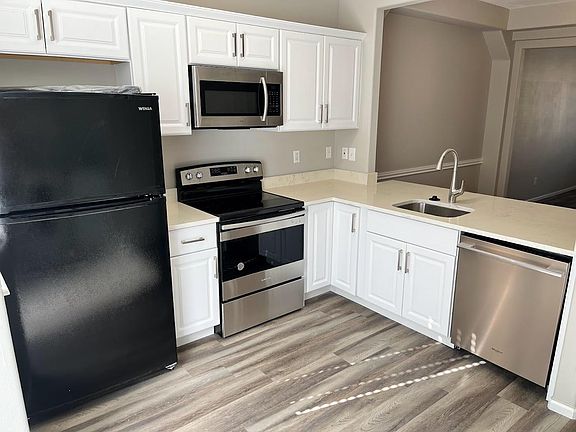 2 bedrooms , each has its own private bathroom attached. The entire unit has been remodeled top to bottom. It will be available on October 1st. One dedicated parking spot with multiple open visitor spots close. Rent includes water,sewer, trash, outside maintenance, and snow removal. Will consider 6 or 12 month lease.