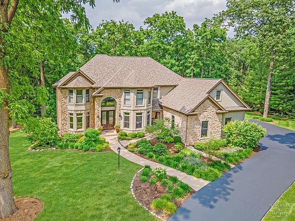 Stately and impeccably maintained home built by premier local builder, Canyon Custom Homes. This home is a REMARKABLE find, situated in the coveted Turnberry community, backing to conservation area, with sweeping views of Turnberry golf course out the front. Situated on a cul-de-sac, with 3/4 acre lush grounds, every inch of the home's exterior has been manicured to perfection. From the plush lawn, to the extensive professional landscaping and new landscape lighting, to the brand new driveway and the significant hardscaping, you'll be impressed at every turn. The beautiful deck with aluminum railing includes a pristine built-in hot tub, ready for morning coffees or an evening cheers! The whole family will also get a kick out of the GoalZilla basketball hoop. Upon entering the impressive mahogany front door, you'll appreciate the great 'flow' of this home, and the warm touches including hardwood flooring, floor to ceiling double-sided fireplace, and an entire wall of windows in the family room, letting the outdoors in. The gourmet kitchen is the 'heart of this home,' with a brand new KitchenAid high-end refrigerator, new Miele dishwasher, Wolfe downdraft range, double ovens, and handsome maple cabinetry. The recently renovated mudroom/laundry room has a huge locker area and a sink station with custom backsplash. The first floor home office is large enough for multiple people to 'work at home,' and has direct access to the large deck. Upstairs, you'll find hardwood, newer plush carpeting, and 4 large bedrooms, each with closet organizing systems by Closet Works. The two secondary bathrooms are recently renovated, and have heated floors, to keep the kids toasty on even the coldest winter days. The primary bedroom suite has its own gas fireplace, luxurious bathroom with jetted tub, dual showerheads, and an enormous walk in closet! The finished English basement has plenty of daylight, custom wet bar, and multiple spaces that make great handout areas, and/or home gym space. Some other notable recent updates include the new epoxy garage floor, zoned furnaces and A/C's ('22), and roof (Oct. '23). There is just so much to see in this luxurious, turn-key home. The esteemed Turnberry community offers a scenic and challenging 18 hole golf course, 3 golf simulators, driving range, and lakes stocked with sport fish (large mouth bass!). Award-winning Crystal Lake schools, and super easy access to Rte. 47, Huntley NW Hospital, and the BRAND new Haligus Road Park, which will include pickleball and basketball courts, soccer fields, walking paths, playground equipment, and splash pad. The location is unbeatable! If you appreciate quality and location, you're going to want to get to this one quickly! Limited showings available while on the private network to serious buyers.