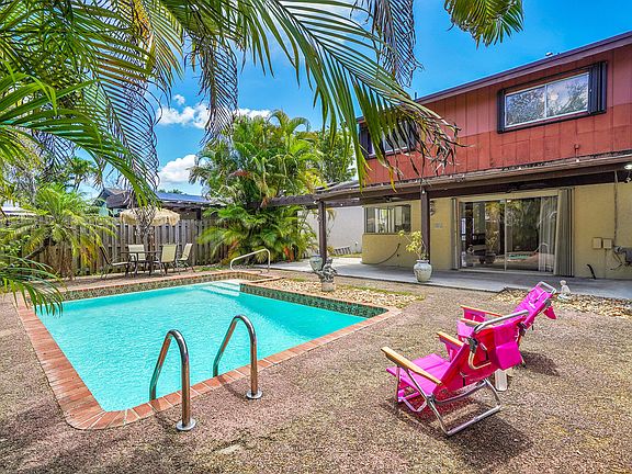 Best priced pool home in Miami! Bring your bathing suits and make a splash! Former Builders Model Pool Home! This 3 bedroom 3 bathroom, 1 car garage, 2-story detached single-family home offers the perfect blend of comfort, style, and value. Nestled in a quiet cul-de-sac.Step inside to a light and bright interior with soaring cathedral ceilings, new flooring, and updated Bathrooms. The open-concept kitchen overlooks the sparkling pool and features granite countertops, perfect for entertaining or everyday living. All bedrooms are conveniently located upstairs in a split floor plan, providing both privacy and functionality.Key upgrades include a 2018 roof, 2019 A/C, brand-new 2025 water heater, and a new garage door. Pool pump 2016. Storm protection is covered with accordion shutters upstairs and metal shutters downstairs. The fully fenced yard with wood fencing adds both security and charm.