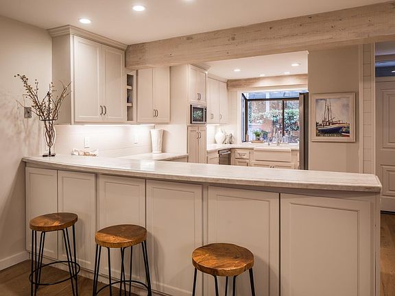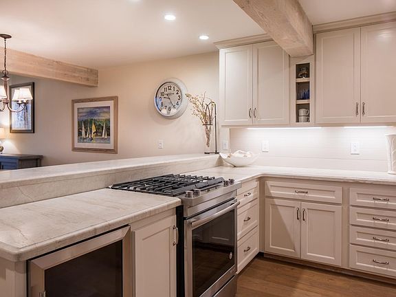 Behind the gates of the private community of Carmel Valley Ranch, tucked away in a quiet level cul-de-sac, is this refreshed, renovated home. Enter through a bright indigo door to reveal a relaxed, open floor plan where a refined new remodel dazzles with soft color, texture and essence of a modern Cape Cod beach retreat. It's all about how it makes you feel with high ceilings, warm lighting and dramatic, artful features. European wide plank oak flooring and accent walls of polished wood shiplap are featured throughout. Exquisite leathered quartzite slab countertops and all custom-built cabinetry are prominent features. The newly redesigned expansive kitchen that's simply stunning showcases an open breakfast bar ideal for entertaining. The large master suite includes an extra area for office, hobbies or even grandkids. A separate downstairs Guest Suite is perfect for family & friends. Three charming outdoor spaces top off this captivating home! The works been done, time for relaxation!