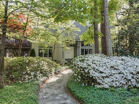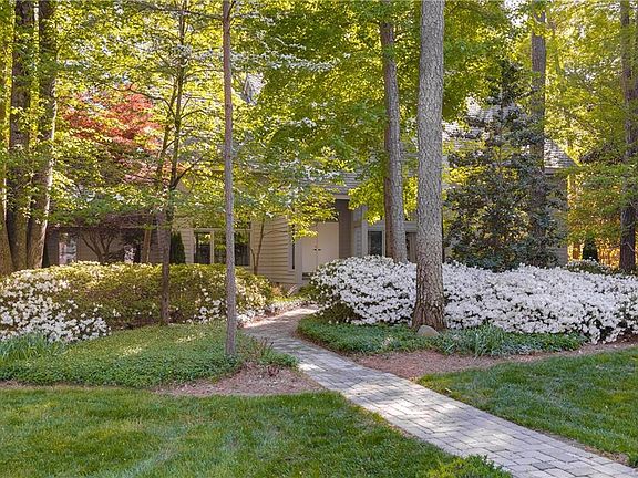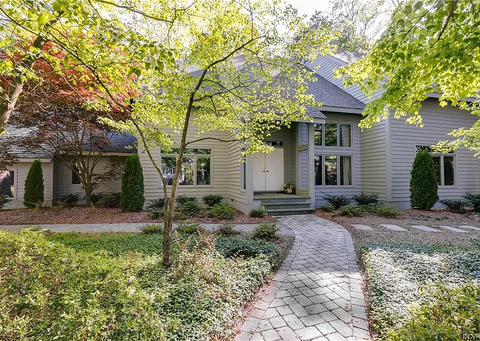 Come see and come fall in love w/ this wonderful custom built contemporary wrapped in cedar siding and new grand manor roof! Positioned in the beautiful community of Georges Bluff this stunner is settled into its own park-like surround. Owners have had an exceptional landscape architect create a lush garden with hardscape terrace, and paver driveway. The double door entry opens to a 2-story foyer and beyond is a light filled two story great room with FP, wet bar, custom built-ins and 2nd floor catwalk. French doors lead to the outdoor terrace and lighted garden. This open floor plan features a well scaled dining room, bright white kitchen, adjacent spacious laundry room/mudroom leads to the 2.5 garage with storage nook. The well designed master suite provides a large walk-in closet and private bath, plus provides beautiful garden views. Just around the corner is a charming library/office with abundant built-ins and nearby powder room. The 2nd floor boasts 3 more king-sized bedrooms two with built-ins one with a private bath the others served by a large hall bath. A 30+ ft. walk-in storage room completes the 2nd floor. Priced to allow new owner to make their special finishes