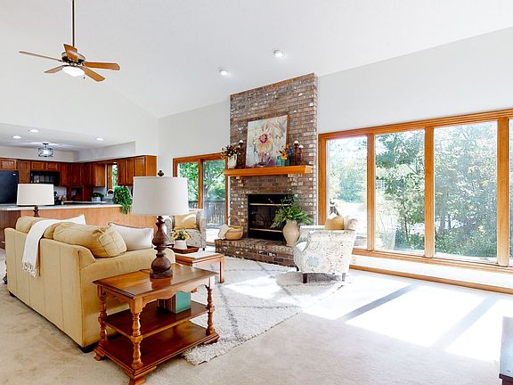 Secluded, lakefront home on just under 1 full acre of wooded bliss. If you long for a private oasis that allows you to feel like you are on vacation every day of the week, this property is for you. This 1.5 story home offers 3 main floor bedrooms including one master suite and a second expansive master suite on the second floor, 2 full bathrooms and 2 half bathrooms. A full finished walk-out daylight basement, a bar and a great view of the lake. Main floor laundry and an oversized 2 car garage with a separate garden shed gives you plenty of perks and storage. Home was built in 1988. The roof is only 10 years old with 50 year shingles. HVAC system was replaced in 2017 with high efficiency systems. The home is an open floorplan. Located in the coveted Charter wood subdivision and Tri-Valley schools.