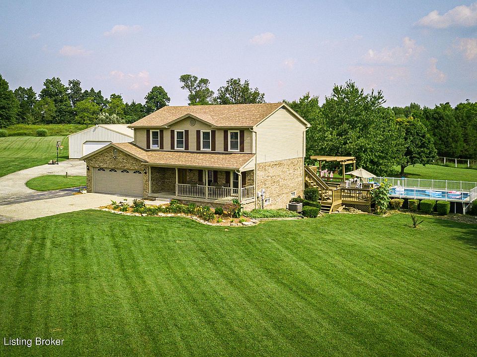 Take a look at this ''like-new'' 2 story home which sits on 5+ acres of land. This home features 4 bedrooms and 3.5 baths. On the main floor your will find a dining room, kitchen with beautiful cabinets and stainless appliances, great room with fireplace, laundry room and a 1/2 bath. On the second floor you will find 4 bedrooms and 2 full bathrooms,. A family room, kitchen area, full bathroom, and a storage room in the walkout basement. The 2 car attached garage has great storage space as well. Out back you will see the deck with above ground pool, pond, 40x40 pole barn, and fabulous landscaping. Almost EVERYTHING in the house is only 1 year old. House was rebuilt in 2018.