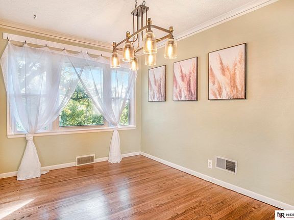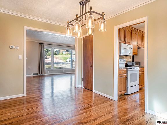 Welcome to this charming brick ranch in the heart of Wyman Heights, more than just a home—it's a lifestyle. Perched on over 1/4 acre of beautifully terraced land, this W/O ranch offers stunning views of the Missouri River and the iconic Mormon Bridge. Step inside to the warmth of wood floors, elegance of architecturally rounded corners, and charm of two brick hearths framed by built-in shelving. Large windows flood the space with natural light, making every room feel open and inviting. Imagine preparing meals in the spacious eat-in kitchen, complete with tile backsplash, abundant storage, and a picture-perfect view of the river valley. Expand your living space downstairs with a cozy family room, 4th bedroom, bonus room, and updated 3/4 bath. What a great retreat for family or guests. This home is nestled in a closely-knit community, offering easy access to downtown Omaha, major highways, Eppley Airfield, and nearby parks, ideal for hiking, boating or just soaking in nature's beauty!