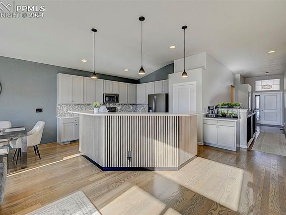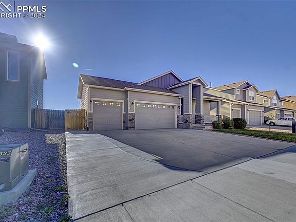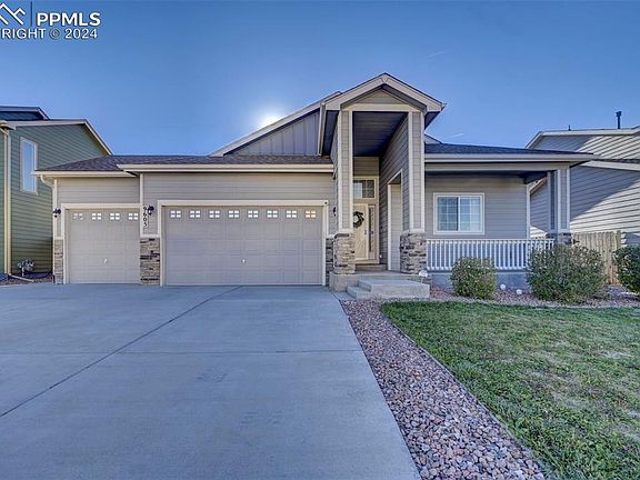 Pride of ownership in this pristine Aspen View Homes Ranch style home with finished basement located in Carriage Meadows South at Lorson Ranch. 5 bedrooms, 3 bathrooms, 3 car garage. Extensive hardscaping to allow for optimal parking and access to the low maintenance back yard. This beautifully maintained home is the one you have been waiting for! At 3,120 square feet, this home has the space and flow for all of your needs. Great use of space and tons of storage! REAL hardwood flooring throughout entertainment areas on the main level. Gas stove and stainless appliances. Upgraded lighting throughout. You will not have to do a thing to this beautiful home. Just move in and start enjoying everything Colorado has to offer! Close to Ft. Carson Army Base and close proximity to Peterson and Schriever SFB. Come see this amazing home today!