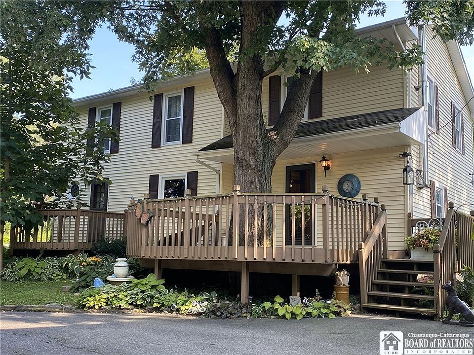 MOVE RIGHT IN and ENJOY the peaceful setting of this beautiful, updated and remodeled two-story home, offering four bedrooms, and two full baths, located on the outskirts of the Village of Fredonia. You'll love the custom designed kitchen that has a breakfast nook and beautiful cherry cabinets with corian countertops. There is an open dining and living room area with a beautiful, gas fireplace, enhanced by cherry woodwork. Updated, full bathrooms. First floor laundry room with much storage space. Efficient wood-stove. Spacious bedrooms with closets. Vinyl windows and siding. Decks and a great gazebo for relaxing outside.