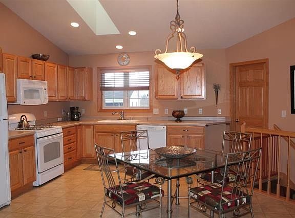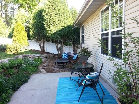 Enter the covered porch, walk inside and immediately fall in love with this practical split bedroom floor plan. Open living room with fireplace backs to patio and fenced yard overlooking mature trees. Spacious kitchen with easy access to laundry, garage and finished LL. Exposed Rec room is perfect for relaxing or entertaining with custom built wet bar complete w/fridge, dishwasher, microwave, full bath and custom built-in entertainment center. Unfinished basement area offers ample storage.